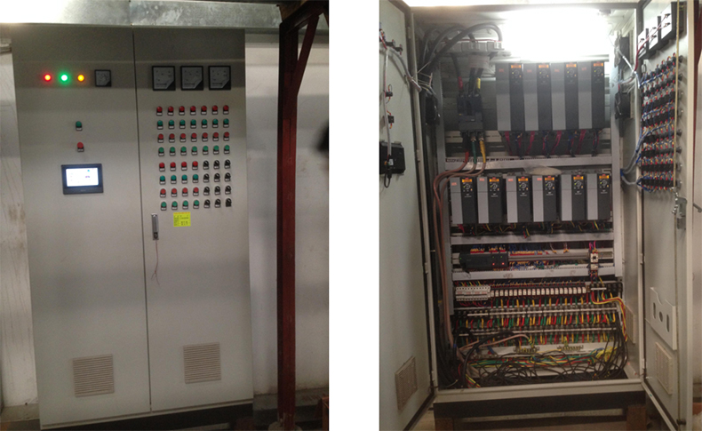 該系統設計之初,均沒有考慮冷卻泵、冷凍泵、循環泵采用變頻控制(如下表1),而是采用傳統的星三角啟動方式(舊電柜見下圖1),根據對系統運行工藝的觀察,泵總功率110.5KW,電能浪費嚴重,存在較大的節能空間。