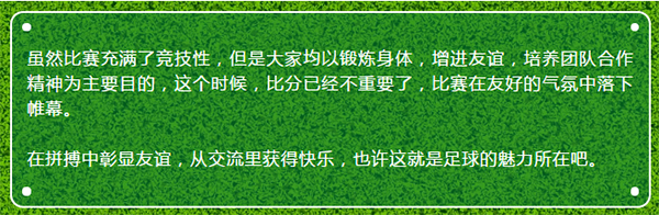 一天的友誼賽下來,大家都摩拳擦掌,信心滿滿。希望在決賽中發(fā)揮實(shí)力,比出水平。