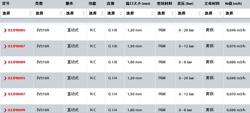 EV310A 包括一系列有競爭優勢的直動式 3 位/2 通小型電磁閥系列,它們適用于廣泛的工業應用(如導閥應用)。