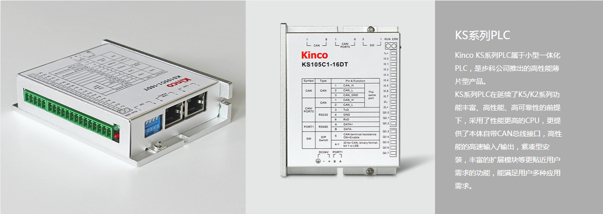 KS105C1和KS105C2本體自帶CAN接口,支持CANopen主站、從站和CAN自由協議,配合便利運動控制指令庫,為多軸應用場合提供更高性價比的選擇
