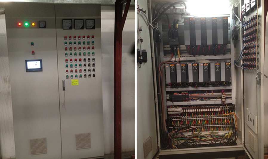 該系統(tǒng)設(shè)計(jì)之初,均沒有考慮冷卻泵、冷凍泵、循環(huán)泵采用變頻控制(如下表1),而是采用傳統(tǒng)的星三角啟動方式(舊電柜見下圖1),根據(jù)對系統(tǒng)運(yùn)行工藝的觀察,泵總功率110.5KW,電能浪費(fèi)嚴(yán)重,存在較大的節(jié)能空間。