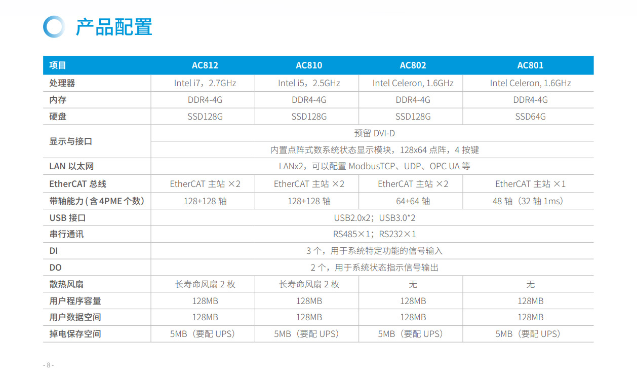 AC800 高性能智能機械控制器,是基于Intel X86 處理器硬件平臺,符合PLCopen 規范的高性能多軸運動控制器,以EtherCAT 為總線,可以實現多軸伺服控制,尤其適用于先進制造業的高速生產裝備和大型設備的控制。