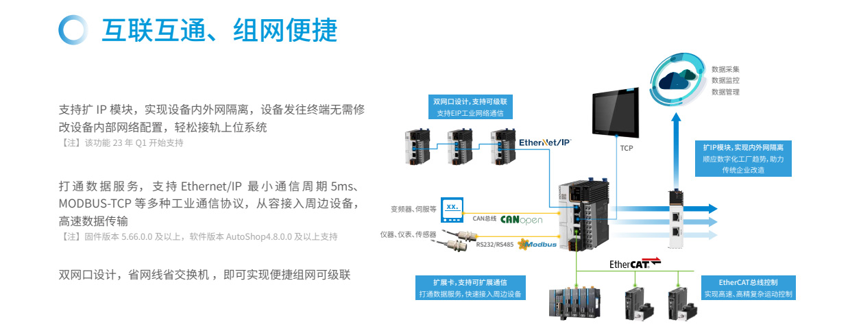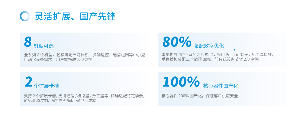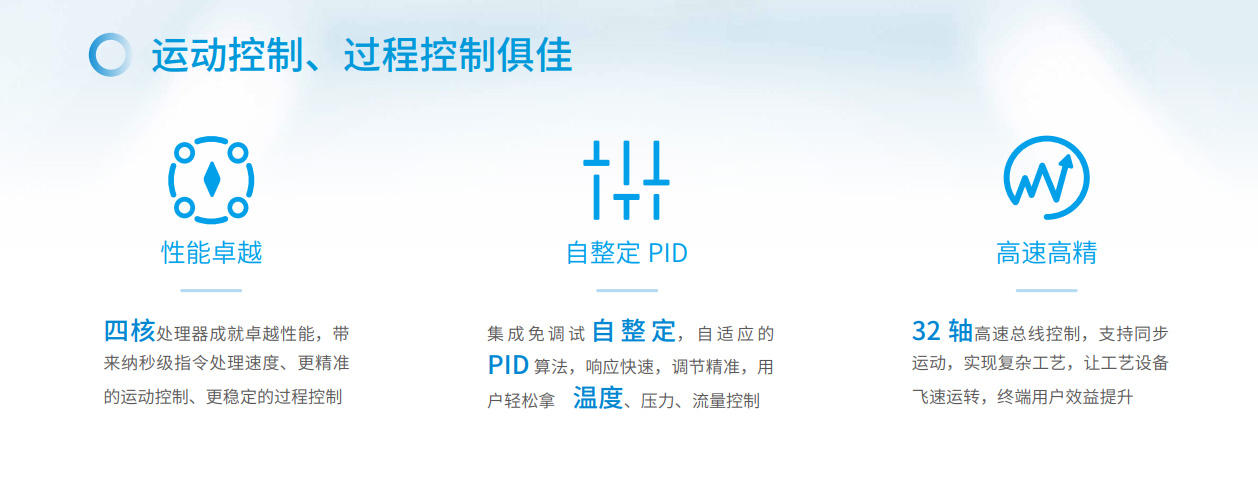 易實現運動控制、過程控制易選型、易擴展易互聯、易組網易編程、模塊化易交付、100%核心器件國產化